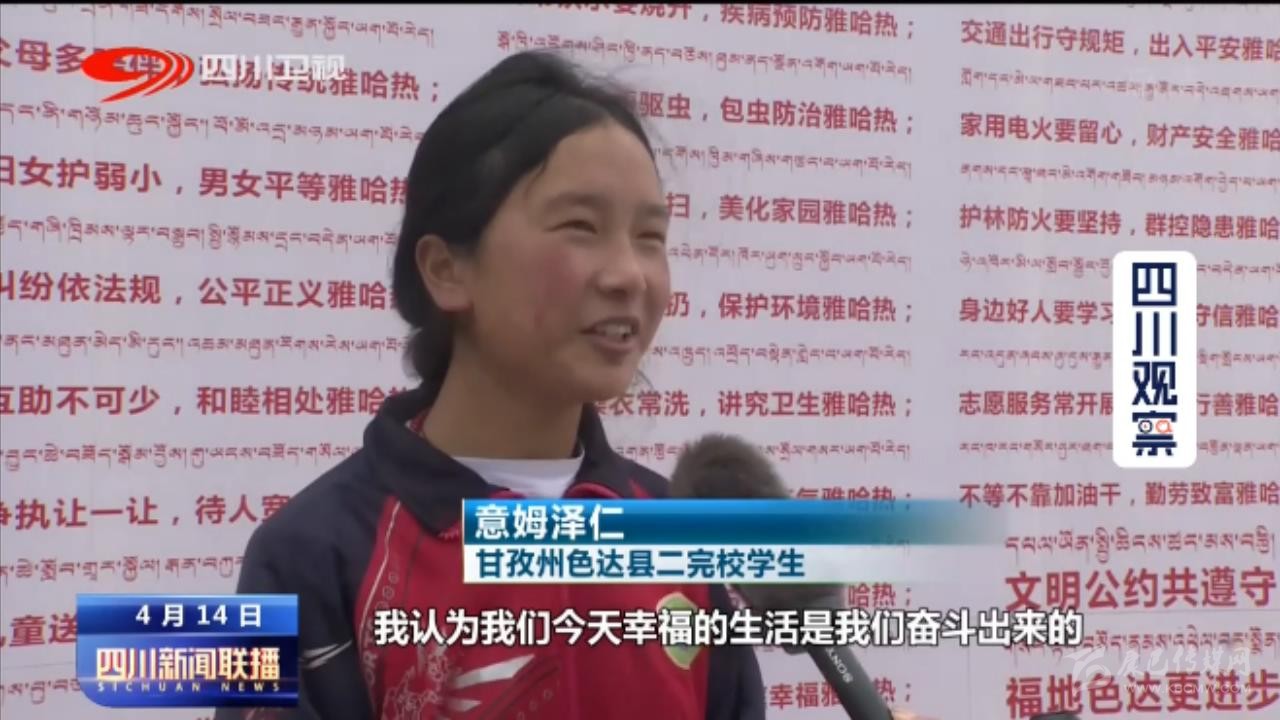 色達(dá)縣二完校學(xué)生 意姆澤仁:今天聽了叔叔阿姨話,我認(rèn)為我們今天幸福的生活是我們奮斗出來的,又讓我們想起了我們學(xué)校里面的一段小標(biāo)語,那就是將來的你一定會感激現(xiàn)在奮斗的自己。