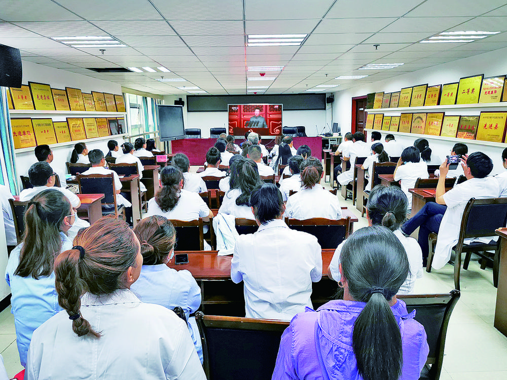丹巴縣醫(yī)護(hù)人員集中觀看慶祝大會直播。