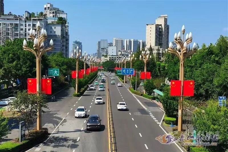 花團(tuán)錦簇、紅旗飄飄……在遂寧,主要街道及重點(diǎn)區(qū)域紛紛懸掛鮮艷的五星紅旗,形成一片片“紅色的海洋”,洋溢著濃濃的節(jié)日氛圍。