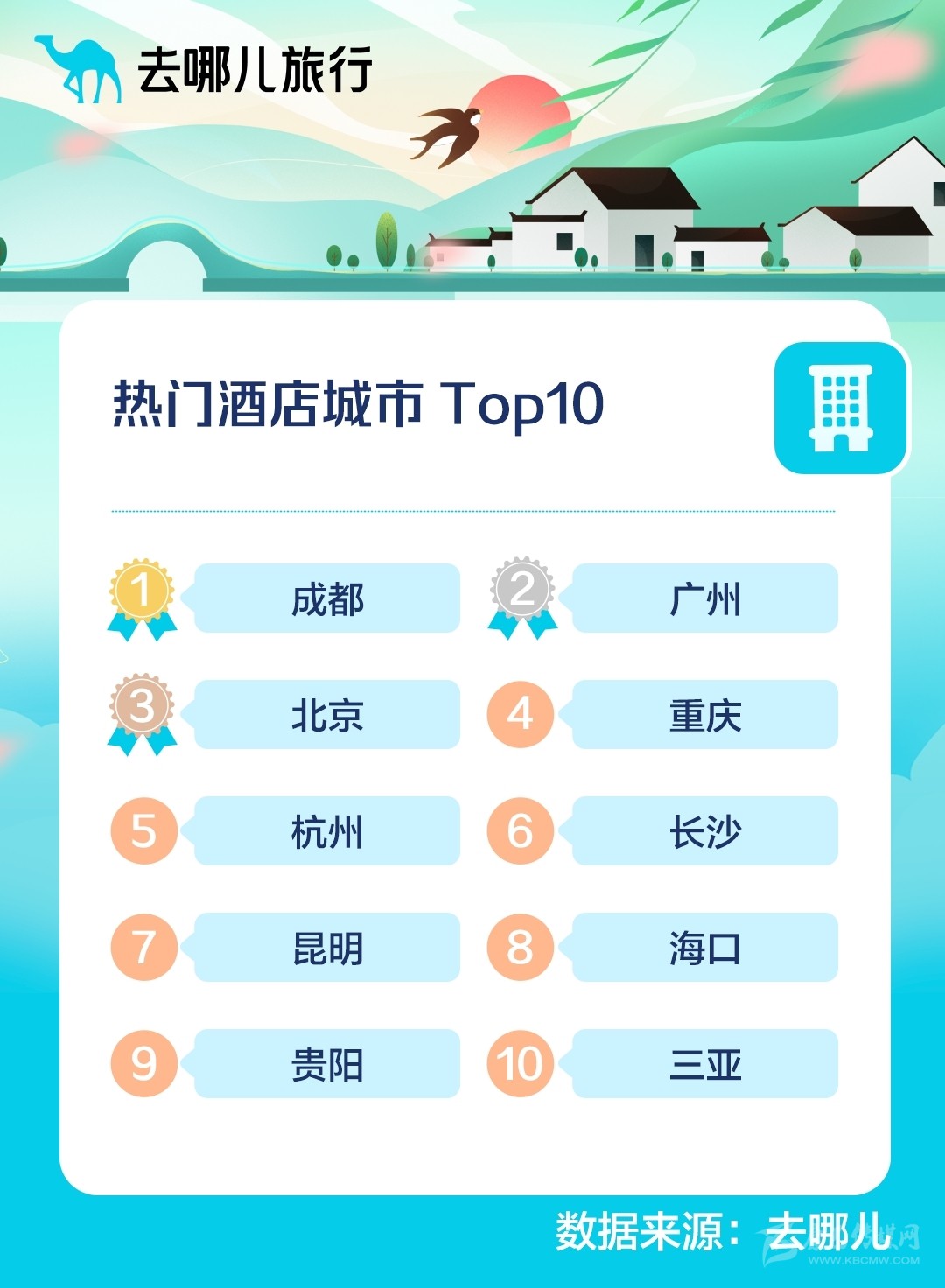 去哪兒旅行預測:2022清明假期熱門酒店城市TOP10。