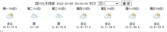 中央氣象臺(tái)預(yù)計(jì),10月10日20時(shí)至11日20時(shí),四川西部和南部有小到中雨;10月11日20時(shí)至12日20時(shí),四川大部有小到中雨。