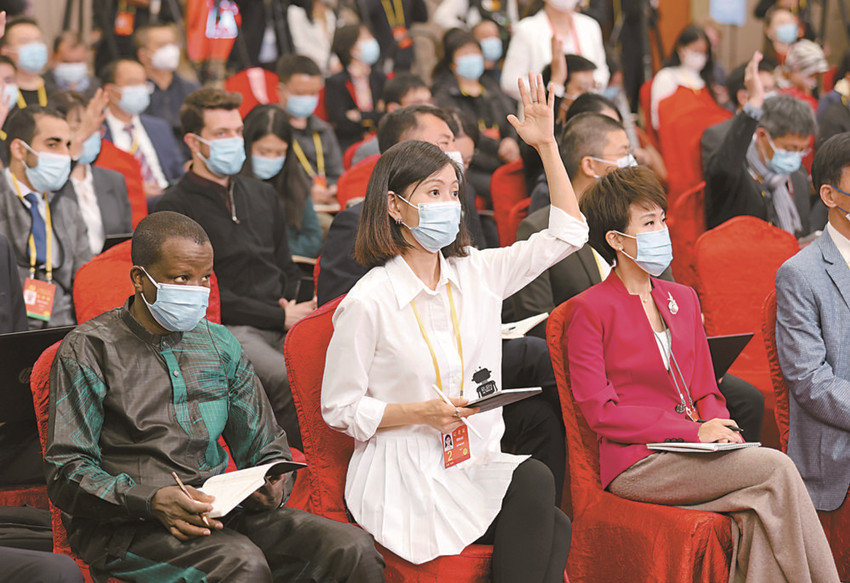記者在分會(huì)場(chǎng)舉手提問(wèn)。 新華社 發(fā)