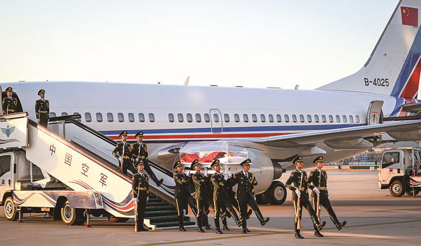 12月1日,江澤民同志的遺體從上海由專機敬移到達北京。 新華社記者 李學(xué)仁 攝