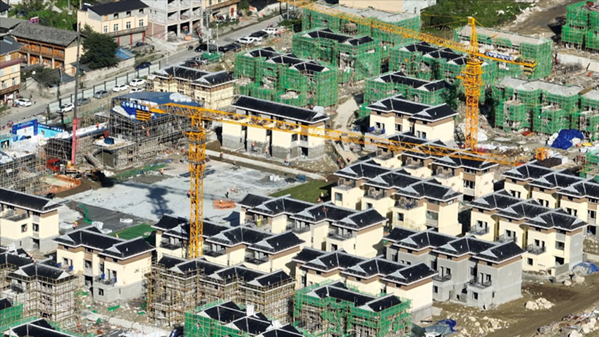 圖為海螺溝災(zāi)后恢復(fù)重建統(tǒng)規(guī)統(tǒng)建安置點建設(shè)現(xiàn)場。 記者 肖宵 攝