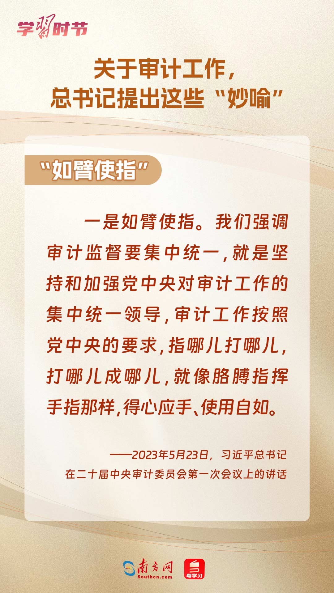 11月1日出版的《求是》雜志刊登了習(xí)近平總書(shū)記在二十屆中央審計(jì)委員會(huì)第一次會(huì)議上的講話(huà)全文。總書(shū)記在重要講話(huà)中“妙喻”審計(jì)工作,讓我們一同學(xué)習(xí)。