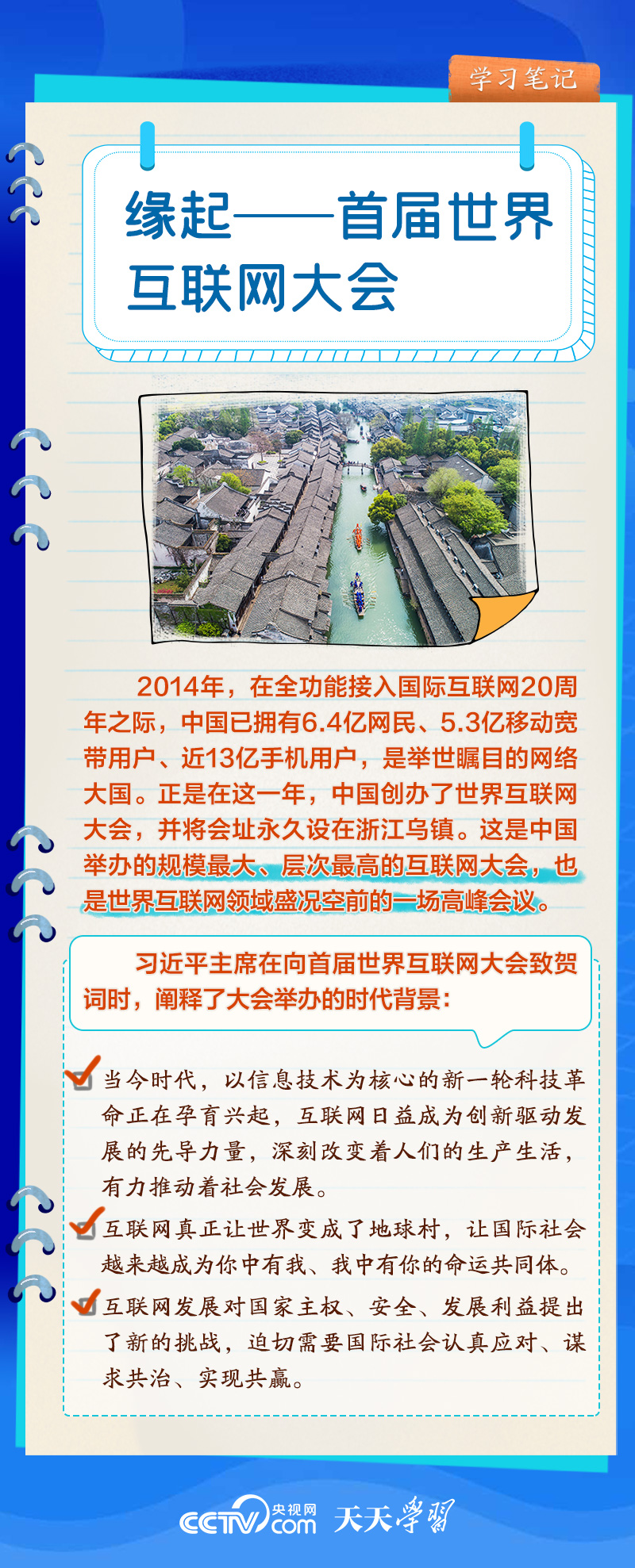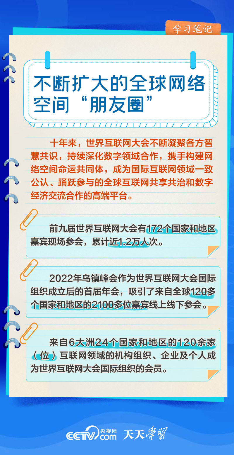 前九屆世界互聯(lián)網大會,習近平主席或親臨現(xiàn)場發(fā)表主旨演講,或視頻致辭,或向大會發(fā)來賀信,以不同形式關心大會舉辦。央視網《天天學習》欄目推出學習筆記,與您一起了解世界互聯(lián)網大會的十年“網”事。