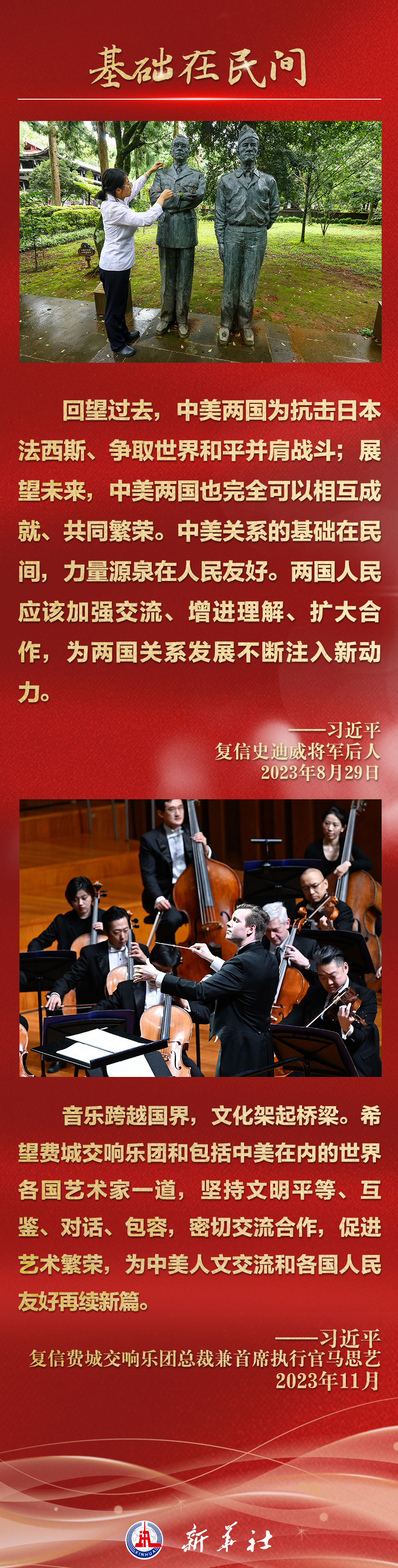 今年以來,從在京會見美國各界人士,到向“鼓嶺緣”中美民間友好論壇等活動(dòng)致賀信,再到復(fù)信美國華盛頓州“美中青少年學(xué)生交流協(xié)會”、史迪威將軍后人、飛虎隊(duì)老兵等友好人士,習(xí)近平主席同美國各界真摯互動(dòng),強(qiáng)調(diào)中美關(guān)系基礎(chǔ)在民間,希望在人民,未來在青年,活力在地方。