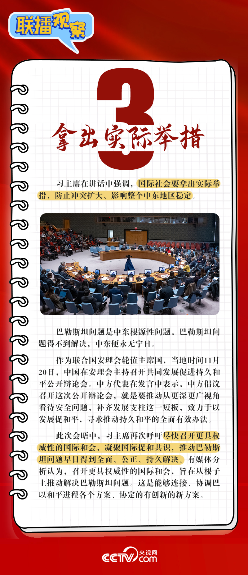 “當(dāng)前形勢下,金磚國家就巴以問題發(fā)出正義之聲、和平之聲,非常及時、非常必要。”在本次會晤中,習(xí)主席結(jié)合當(dāng)下巴以局勢,提出三點正義主張。