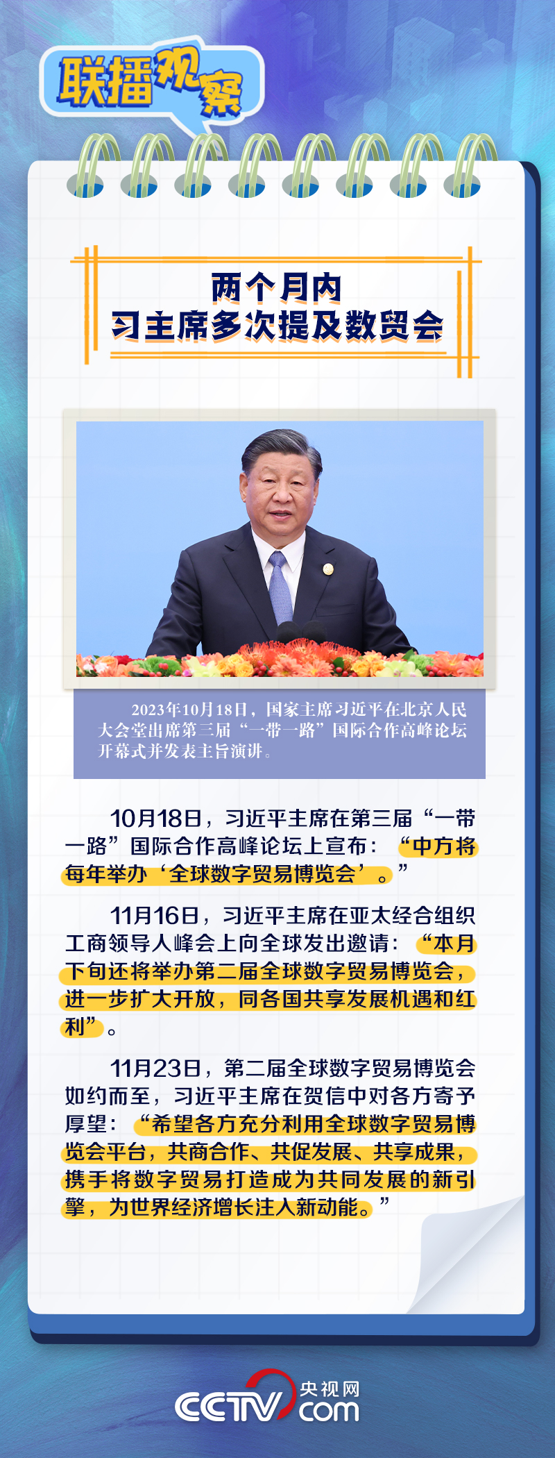 聯(lián)播+“當前,全球數(shù)字貿(mào)易蓬勃發(fā)展,成為國際貿(mào)易的新亮點?!?1月23日,習近平主席向第二屆全球數(shù)字貿(mào)易博覽會致賀信,回顧了近年來中國為全球數(shù)字貿(mào)易蓬勃發(fā)展付出的努力,并對與會各方寄予厚望。