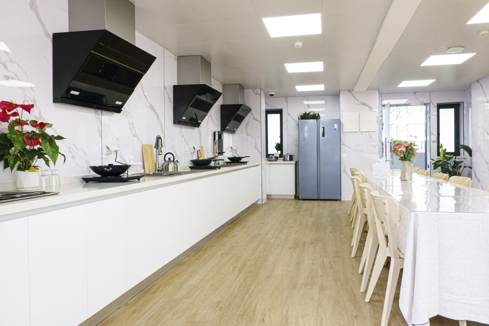 閔行區(qū)新時(shí)代城市建設(shè)者管理者之家的共享廚房和共享洗衣房。