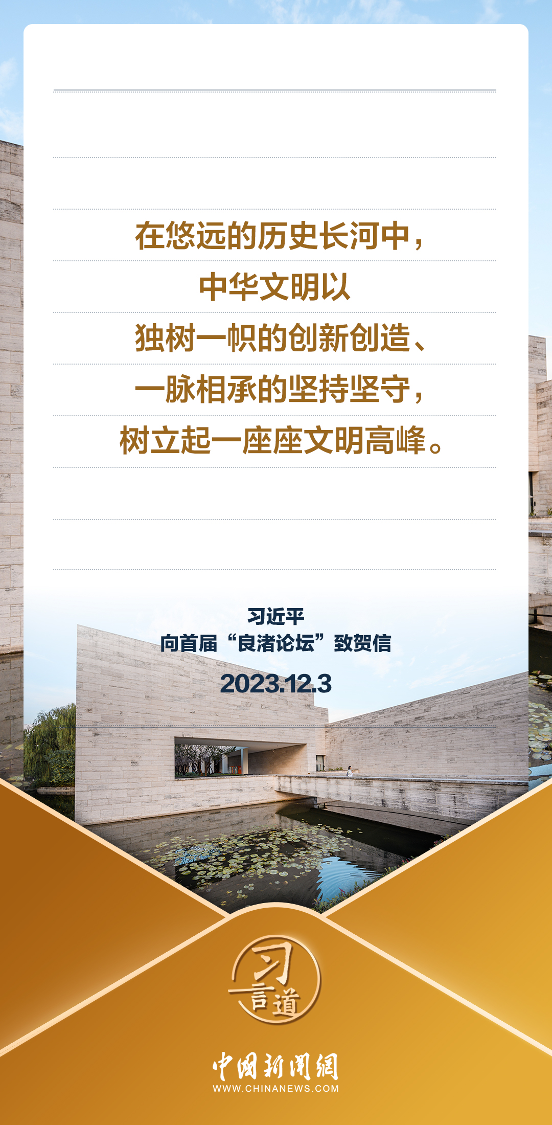 12月3日,國家主席習(xí)近平向首屆“良渚論壇”致賀信。習(xí)近平指出——