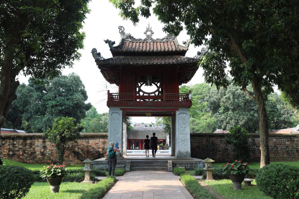 文廟是越南首都河內(nèi)的歷史文化地標(biāo)。文廟內(nèi)供奉著孔子,被譽(yù)為越南歷史上“第一所大學(xué)”。在這里求一幅漢字書法作品,是不少本地民眾和外國游客鐘情的活動。