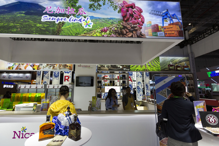 2023年11月6日在第六屆進(jìn)博會(huì)國家展拍攝的尼加拉瓜展臺(tái)。