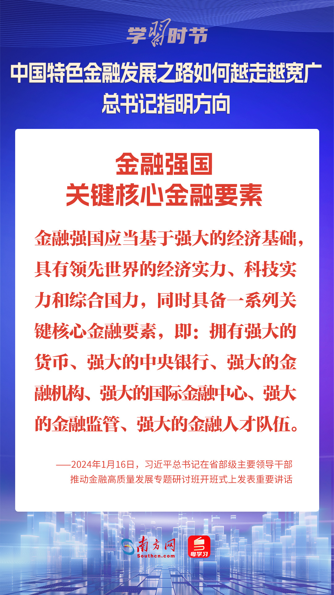 1月16日,中共中央總書記、國家主席、中央軍委主席習(xí)近平在省部級主要領(lǐng)導(dǎo)干部推動金融高質(zhì)量發(fā)展專題研討班開班式上發(fā)表重要講話,為中國特色金融發(fā)展之路指明方向。