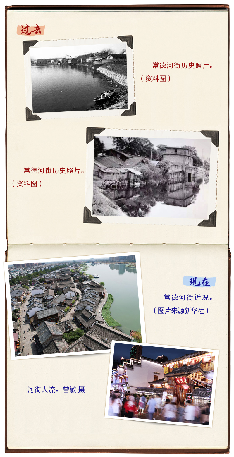 2024年3月19日,習(xí)近平到常德市考察調(diào)研。位于沅江江畔的常德河街歷史悠久,曾毀于1943年的常德戰(zhàn)役。近年來(lái),常德市復(fù)原老河街風(fēng)貌,將此地打造成為歷史文化街區(qū)。