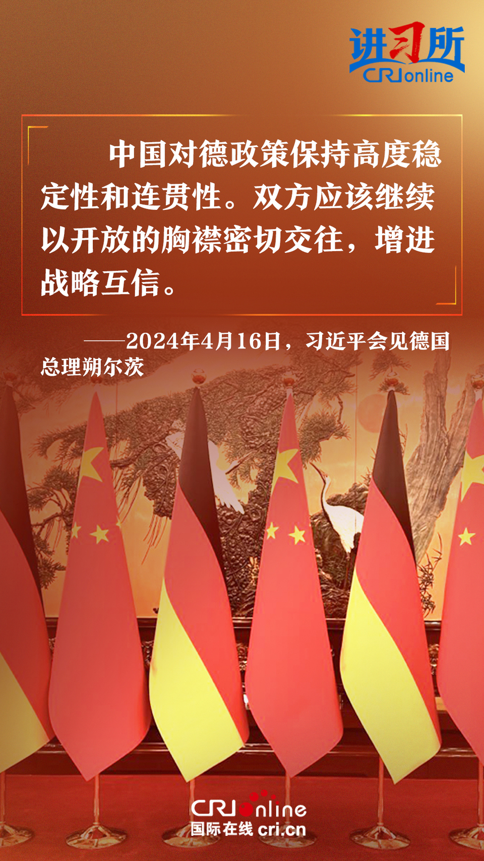 4月16日上午,中國國家主席習(xí)近平在北京釣魚臺國賓館會見了德國總理朔爾茨。習(xí)近平指出,中德合作對雙方有利,對世界有利。世界越是動蕩,雙方越要提升兩國關(guān)系的韌性和活力。中德是世界第二、第三大經(jīng)濟體,鞏固和發(fā)展中德關(guān)系的意義超越雙邊關(guān)系范疇,對亞歐大陸乃至整個世界都有重要影響。兩國要從長遠(yuǎn)和戰(zhàn)略角度看待和發(fā)展雙邊關(guān)系,攜手為世界注入更多穩(wěn)定性和確定性。