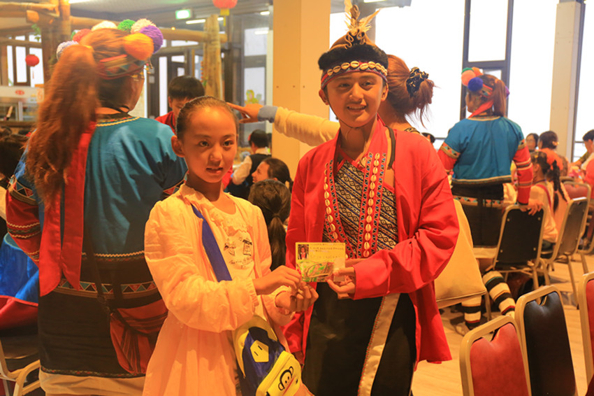 合唱團(tuán)的小朋友與阿里山小學(xué)小朋友互贈卡片。