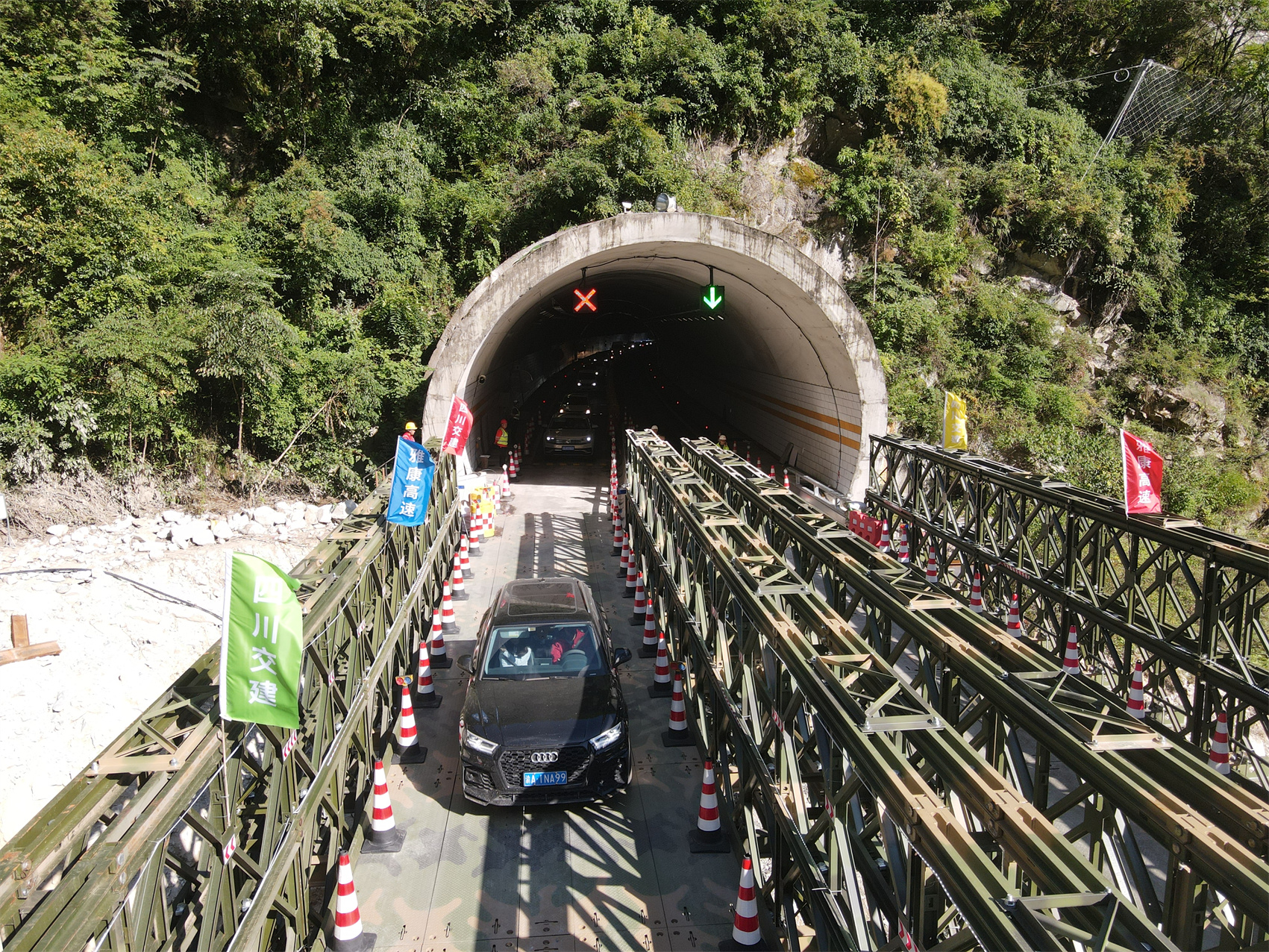 8月20日,災(zāi)害發(fā)生17天后,雅葉高速公路瀘定至康定災(zāi)毀路段應(yīng)急搶通。