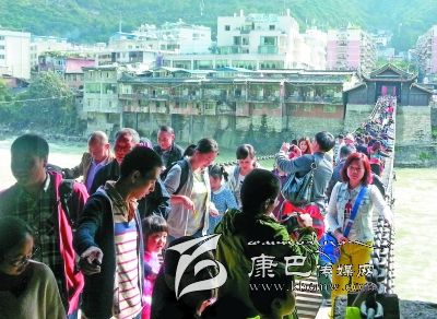 據(jù)縣文物局局長郭成燕介紹,今年“十一”黃金周期間,游覽瀘定橋的游客較往年更理性,沒有出現(xiàn)井噴現(xiàn)象,每天游客量比較平穩(wěn)。游客主要以成都和重慶方向?yàn)橹鳎?5%以上的游客選擇自駕游出行。據(jù)悉,在10月2日這天,瀘定橋全天接待游客近萬人。為了確保游客安全,縣旅游部門在橋頭設(shè)立了安全警示牌,在游客高峰期,工作人員每5至10分鐘分批次放行,每次參觀放行不超過100人,并安排工作人員在瀘定橋中央疏導(dǎo)游客,確保游人安全。同時,在瀘定橋頭滾動播出參觀須知和瀘定橋介紹,引導(dǎo)游人參觀。黃金周期間,該縣旅游部門堅(jiān)持24小時值班,隨時對瀘定橋及周邊進(jìn)行安全巡查,確保安全。截至10月4日,參觀瀘定橋的游客約3.3萬人,門票收入達(dá)25萬多元。