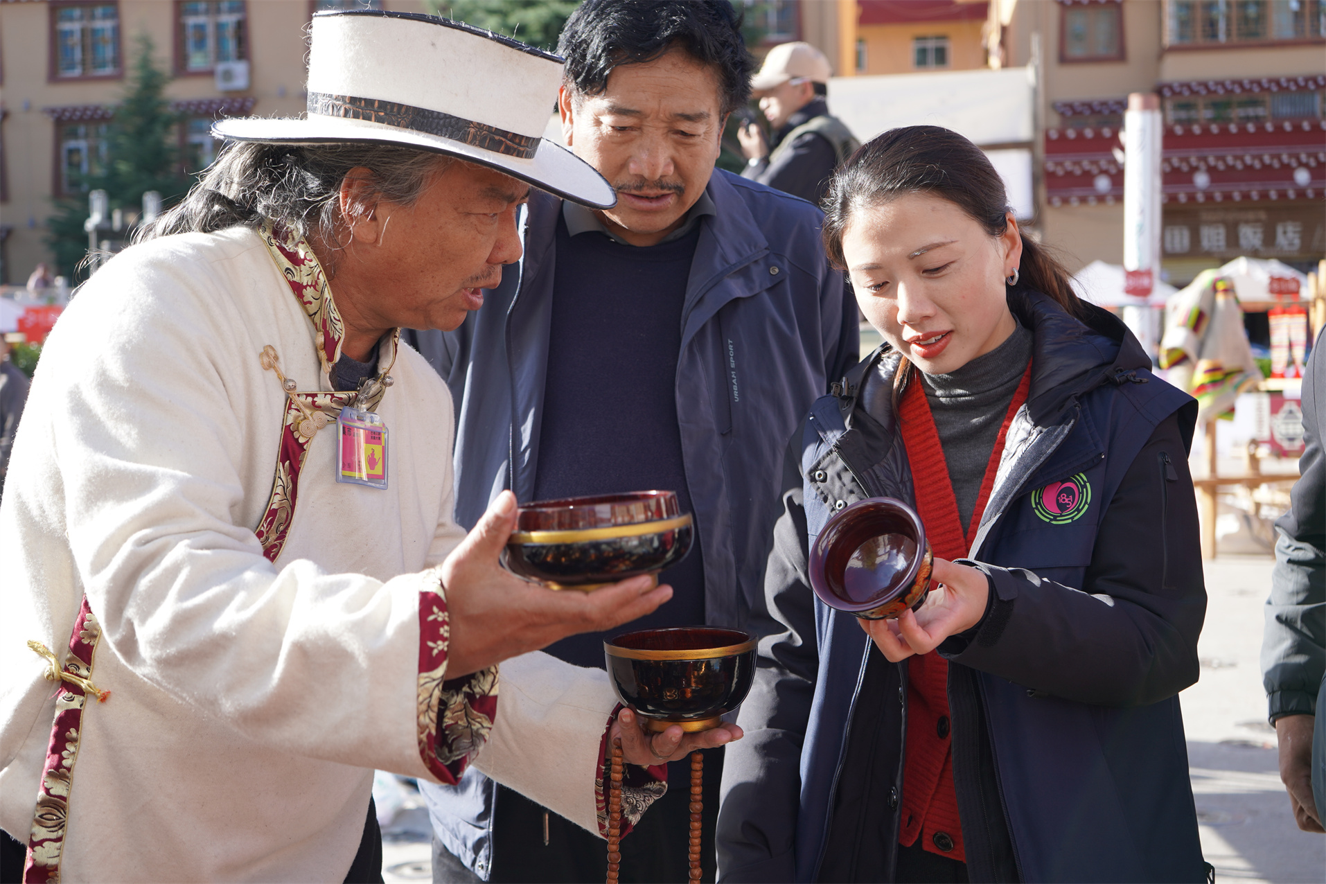 “馬幫馱貨、商人買賣。這個(gè)集市太有意思了!”游客李小姐正在挑選手工木碗,感慨到:“現(xiàn)在手工藝品太少了!今天在這里看見了好多好東西?!奔猩喜毓?、唐卡、編花等一件件精美的民藝作品如同無(wú)聲的詩(shī)篇,訴說(shuō)著古老的故事與傳承的力量。色彩斑斕的扎染,以其獨(dú)特的圖案和變幻的色彩,展現(xiàn)出與藝術(shù)的完美融合;精巧的木雕,在藝人的刻刀下,仿佛被賦予了生命變得靈動(dòng)……