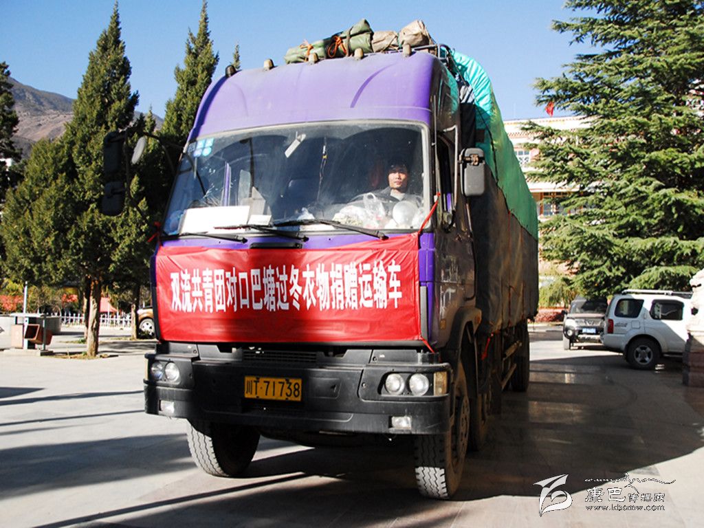 本網(wǎng)訊(賴琳琳 文/圖) 冬日的高原,氣候干燥寒冷。近日,一輛貼著“雙流共青團(tuán)對口巴塘過冬衣物捐贈運(yùn)輸車”鮮紅標(biāo)語的大貨車停在巴塘縣政府門口,志愿者們正忙碌地搬運(yùn)著物品。該車來自800公里外的雙流縣,裝滿了嶄新的棉衣、棉被、保暖鞋、圍巾等共計14041件過冬物資及愛心文具。