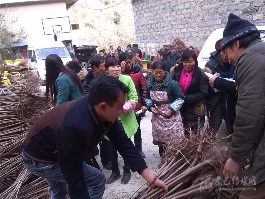 村民踴躍領(lǐng)取大櫻桃樹苗。