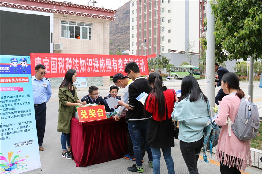 本網(wǎng)訊(吳海波 記者 張嗥)購物時商家不給發(fā)票,可以打哪個電話進(jìn)行投訴?增值稅納稅人分為哪幾類?”這一系列與生活息息相關(guān)的稅法知識有獎答題,引來了眾多四川民族學(xué)院同學(xué)的熱情參與。4月20 日,康定市稅法宣傳月活動持續(xù)升溫,稅法宣傳首次走進(jìn)高等院校。