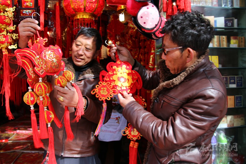 洛讓邊說邊看著單子,“啊”了一聲,說:“差點忘了老婆大人交代的大事?!痹瓉?,臨走時,洛讓老婆特意叮囑他要買春聯(lián)、中國結和燈籠。好在側旁的郭達橋內江小百貨店就有賣,買好之后,洛讓又特意挑選了一個金線編織的魚掛飾,“這個好,這個好,年年有余?!睗M臉充滿憧憬。