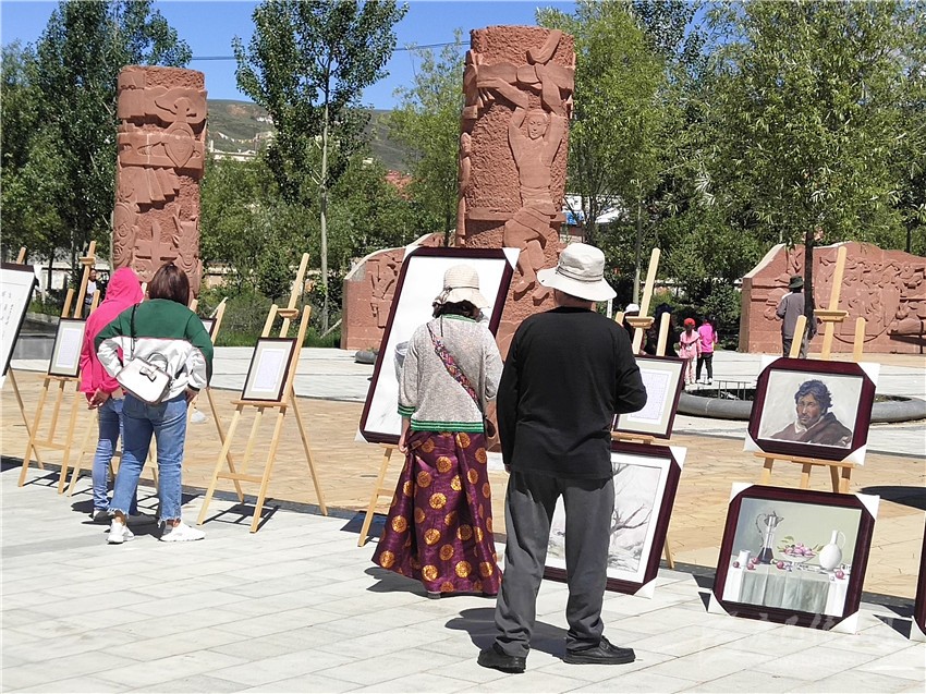 文藝展得到了廣大藝術(shù)愛好者的積極響應(yīng)、參與和支持,共征集到精美作品189件展出,其中書法作品60件、繪畫作品69件、唐卡作品60件。作品內(nèi)容廣泛、立意新穎、主題突出,既有藝術(shù)性又有紀(jì)實(shí)性,富有感染力和表現(xiàn)力。