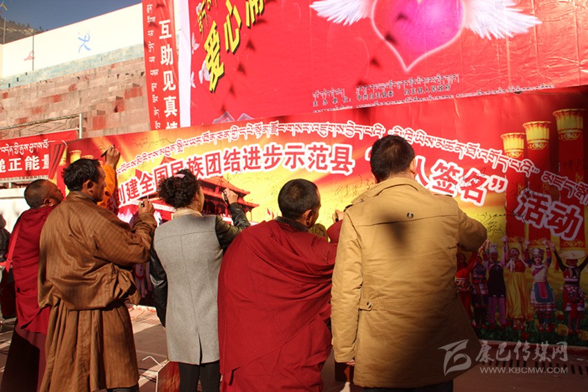 其實,在白玉,像澤稱降措這樣感人肺腑的故事絕非個案。采訪中,筆者細細梳理五年來白玉的創(chuàng)建舉措與成績,完全可以用“務(wù)實”“扎實”這四個字來形容。自2014年創(chuàng)建活動啟動以來,縣委、縣政府嚴格按照“三年創(chuàng)建、四年提升”要求,緊扣“八進活動、共建對子”兩個關(guān)鍵,聚焦“民族團結(jié)促發(fā)展、民族團結(jié)促穩(wěn)定、民族團結(jié)促民生”三大目標,采取“精準安排、精準施策、精心打造、精細管理”四項舉措,并通過層層簽訂目標責任書和層層落實創(chuàng)建標準、測評指標,進而形成了“黨委統(tǒng)一領(lǐng)導、黨政齊抓共管、部門各司其職、社會廣泛參與”的創(chuàng)建工作格局;采取“年度定方案、季度有督查、月月抓推進、層層重落實”的方式,通過召開專題會、動員會、現(xiàn)場會、督導會、匯報會等形式,抓問題、添措施、促整改、補短板、求提升,一系列動真碰硬的推進,使得創(chuàng)建工作由“虛”變“實”;按照“精準宣講、掛圖作戰(zhàn)、對單宣講、對村消號、定學式”的宣講思路,采取“縣到鄉(xiāng)、鄉(xiāng)進村、村入戶、寺廟與僧尼”四個面對面等方式,并結(jié)合常態(tài)化開展的“四下鄉(xiāng)”活動,廣泛學習宣傳黨的民族理論、宗教政策、法律法規(guī)以及各項惠農(nóng)惠民政策。五年來,全縣累計出動宣講服務(wù)人員1180人次,開展宣講宣教、“四下鄉(xiāng)”活動以及民族團結(jié)“八進”活動多達988場次,覆蓋基層干部、農(nóng)牧民群眾和及寺廟近8萬人次,發(fā)放各類宣傳資料2.3萬余份、圖書光盤4500余本(張),贈送各種書籍4130余冊,放映電影152場次;在主要街道、繁華路段、出租車頂屏、燈箱燈桿以及干線公路沿線堡坎,設(shè)置LED屏、宣傳牌、滾動標語和墻體標語,推送各類創(chuàng)建信息上萬余條,在各機關(guān)、單位、醫(yī)院、學校、寺廟、鄉(xiāng)鎮(zhèn)、村組(社區(qū))設(shè)置民族團結(jié)標語、宣傳櫥窗、展板和文化墻,推出各類宣傳欄2145個、宣傳展板 435個;在縣級宣傳平臺開設(shè)專欄,完成各類主題宣傳300余場次;舉辦創(chuàng)建“萬人簽名”、鍋莊節(jié)、演講比賽、籃球友誼賽、知識競賽、文藝演出等各類民族團結(jié)主題活動近20場,實現(xiàn)了創(chuàng)建宣講宣傳宣教全方位、多層面、立體式和廣覆蓋;切實將民族團結(jié)工作與脫貧攻堅、基層黨建、群眾工作、鄉(xiāng)村治理、依法治縣等有機結(jié)合,大力開展干群結(jié)對認親、干部聯(lián)寺聯(lián)僧、支部共建共創(chuàng)以及警民共建等活動;切實在廣大農(nóng)牧民群眾、幫扶援建隊伍、宗教寺院、學校師生、企業(yè)以及部隊中發(fā)現(xiàn)典型、宣傳典型,進而在全縣上下形成了“學先進、趕先進、當標兵”的濃厚氛圍;采取政策傾斜、整合項目、配套資金等措施,狠抓示范點規(guī)范化建設(shè)。目前,全縣所有鄉(xiāng)(鎮(zhèn))、縣級黨政機關(guān)、武警部隊,45%以上的村(社區(qū))、企事業(yè)單位和寺廟已成為民族團結(jié)進步示范地區(qū)或示范單位;……精準發(fā)力、持續(xù)給力的創(chuàng)建活動,有效形成了創(chuàng)建活動“人人參與、人人推動、人人負責、人人共享”的喜人局面。