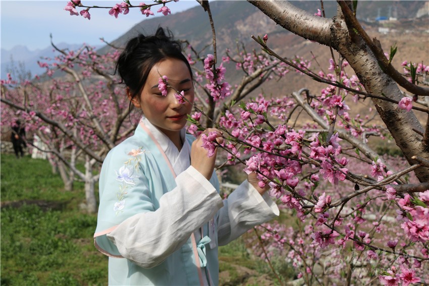春天以桃花綻放為信號(hào),一朵又一朵,一樹(shù)又一樹(shù),鋪滿(mǎn)山坡,伸向河谷,蔚然成花海。1990畝的“幸福桃源”以溫厚的胸懷迎迓四方來(lái)客。