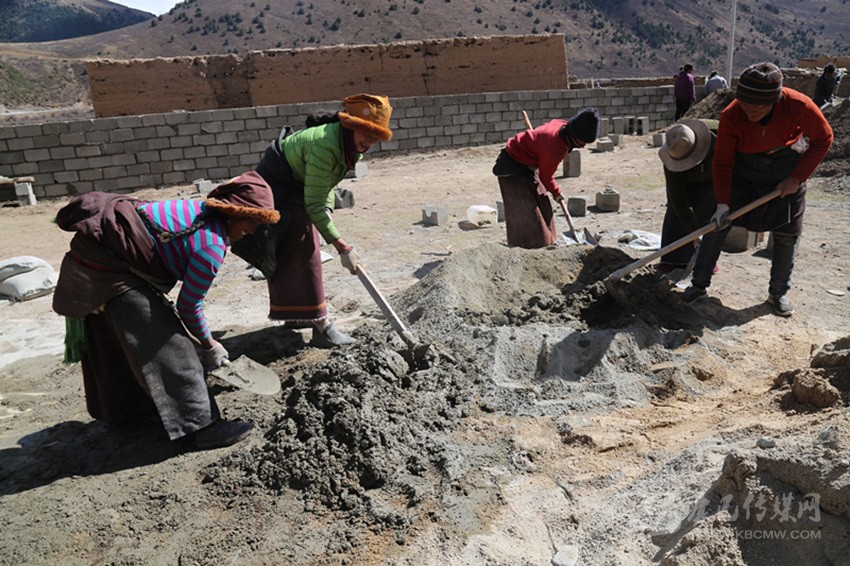在工程實(shí)施中,全組的村民相互幫助,齊心協(xié)力建新房?!白蛱齑蠹?guī)臀野逊孔有薜冒桶瓦m適、漂漂亮亮的。我也來幫四郎曲西建房。這樣你幫我,我?guī)湍?,你幫他,要不了多久,我們這里家家戶戶都會(huì)很漂亮。”正在院子里攪拌灰漿的村民格絨多登微笑著說。