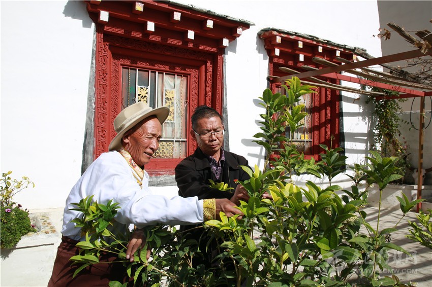 降巴曲增按照鄉(xiāng)村干部的要求,修建了亭子,種上了花卉、油橄欖、梨子、蘋果、櫻桃,品種多樣的水果又是一筆收入。流轉(zhuǎn)剩余的土地,種上了花菜、萵筍、卷心菜、茄子、青椒等蔬菜,不僅自己夠吃,還可以出售。常年駐扎在村上的農(nóng)技員羅思富天天都在村子里轉(zhuǎn),查看花卉和果蔬長勢情況,為村民提供技術(shù)保障。