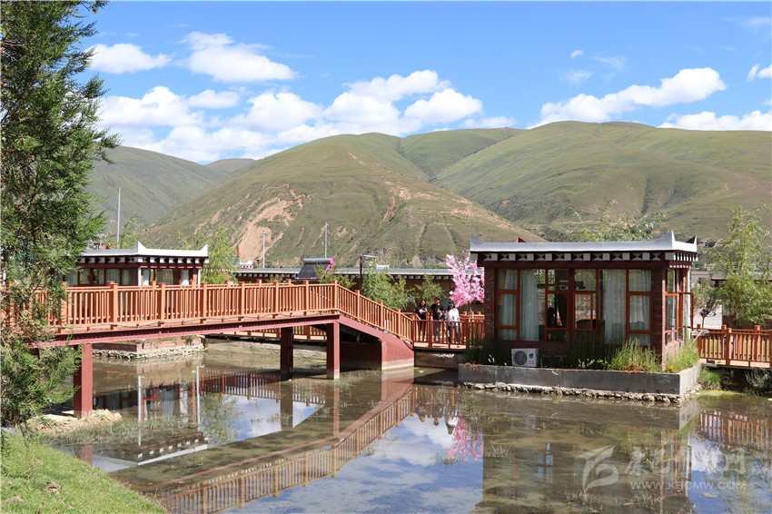 走進(jìn)山莊,一排排仿道孚民居外觀的房子整齊排列掩映在柳樹(shù)間,四面落地玻璃窗的設(shè)計(jì)讓陽(yáng)光溫暖整個(gè)房間,潺潺的小溪縈繞其間,不遠(yuǎn)處蒼措嘎布海子的蘆葦叢在微風(fēng)中輕輕擺動(dòng),幾只野鴨子在水上嬉戲,特色民居增加了民族韻味,漫步木制棧道,眼前呈現(xiàn)出美麗鄉(xiāng)村的畫卷。