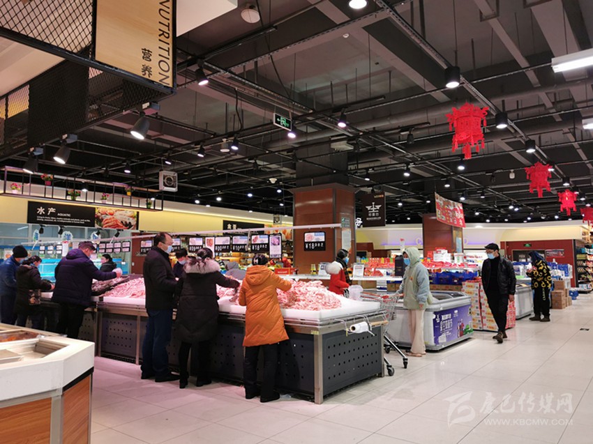 在二樓的豬肉供應(yīng)攤點(diǎn),康定冷鏈凍制品有限責(zé)任公司積極響應(yīng)政府的號(hào)召,為了讓市民能夠買到放心的新鮮豬肉,1月30日,該公司門店冷鏈生鮮肉業(yè)共計(jì)屠宰了4頭生豬,該公司職員告訴記者,疫情期間,豬源供應(yīng)緊張,并且要經(jīng)過層層檢疫才能進(jìn)入市場(chǎng),但是公司仍然積極尋找豬源,保證疫情期間的豬肉供應(yīng),所以即便是到了下午仍能買到新鮮豬肉。
