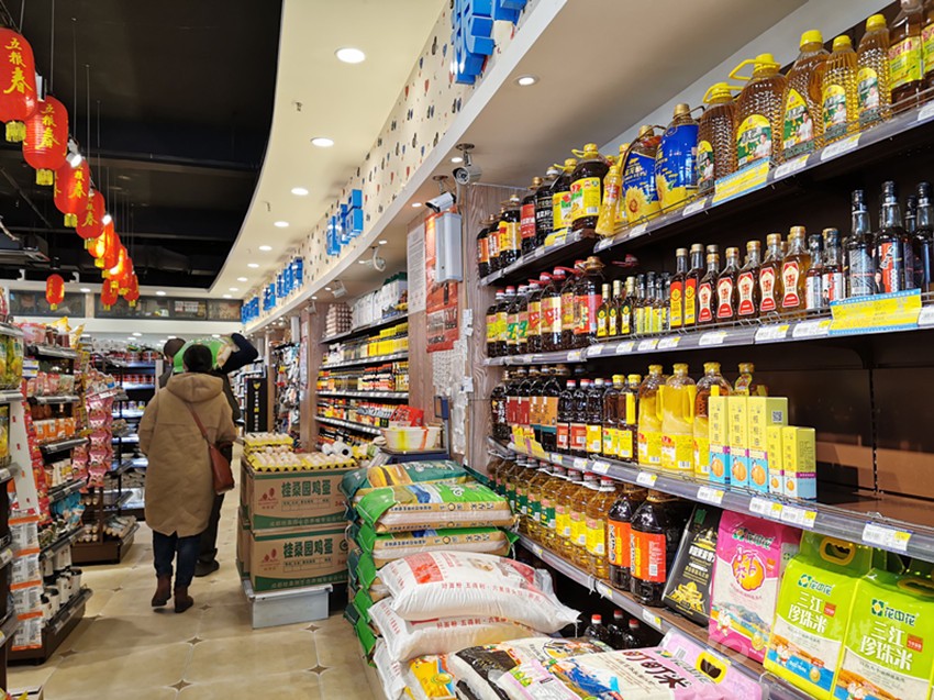 記者走訪多家民貿(mào)公司門店看到,糧油、調(diào)味品等擺滿了多個(gè)貨架,洗手液等也沒有出現(xiàn)斷貨現(xiàn)象,市場(chǎng)井然有序。