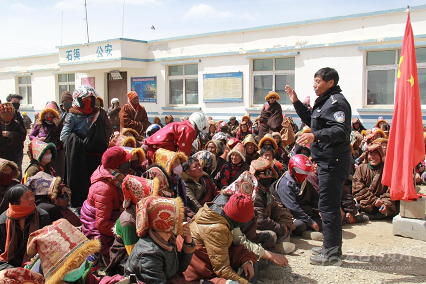 石渠縣公安局向農(nóng)牧民講解掃黑除惡相關(guān)知識(shí)。