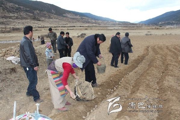 在格中村的田間地頭,到處是一片忙碌的春播景象。雷建平走進(jìn)斯朗卓瑪?shù)奶镩g,在農(nóng)業(yè)技術(shù)人員的指導(dǎo)下,從選種開(kāi)始學(xué)起,病害的種丟掉、大的切成幾瓣,撒點(diǎn)底肥,均勻丟種,把蓋種的土弄成一個(gè)梯形的壟。雷建平一邊勞動(dòng),一邊和斯朗卓瑪攀談,去年土豆收成怎樣?有沒(méi)有增加收入?今年春耕生產(chǎn)有哪些實(shí)際困難?雷建平又接著向她推薦用地膜種土豆的好處,蓋不蓋膜大不一樣,1畝要多收500-1000公斤,加上上市早,價(jià)格也要貴一些,可以到臨近的甲洼鄉(xiāng)江達(dá)村去學(xué)習(xí)經(jīng)驗(yàn)。