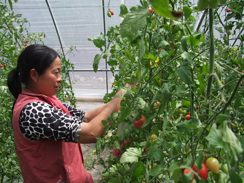 “盛煌公司來這里開展蔬菜大棚建設(shè)以后,每畝每年按照1500元的標準支付了村民的土地流轉(zhuǎn)租金。我是外地嫁到這里來的,沒有土地,他們雇傭我來務工,每個月按照1800元支付我的工資,每個月還可以休息兩天。”正在大棚里摘水果番茄的村民陳國蓉知足地說。