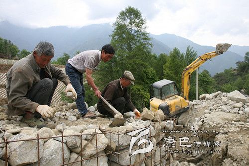 姚在文(中)帶領(lǐng)村民治理滑坡。