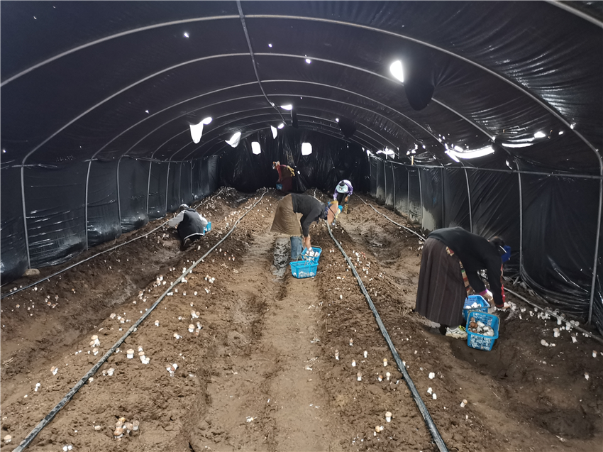 種植球蓋菇不僅讓當(dāng)?shù)卮遄佑辛水a(chǎn)業(yè)基地,更讓村民們體會(huì)到了在家門口增收致富的快樂。“以前更多的是打散工、采集蟲草,沒活干的時(shí)候就在家待著?!苯_(dá)村村民四郎曲珍說,她出生于1993年,在她的記憶中,以前家里除了種植青稞以外,主要的收入來源就是靠采集蟲草,然而采集蟲草周期短,受天氣因素等影響,帶來的收入并不穩(wěn)定。