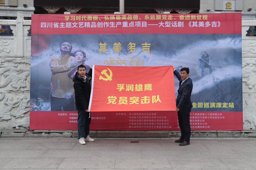 2023年3月21日,四川省主題文藝精品創(chuàng)作生產(chǎn)重點項目——大型情景話劇《其美多吉》在康定市開展巡演。該公司派遣“黨員先鋒隊”三名成員前往康定市學(xué)習(xí),并給予一定的資金支持,號召黨員學(xué)習(xí)其美多吉這名全國優(yōu)秀共產(chǎn)黨員、全國勞動模范、全國道德模范、“時代楷?!钡木礃I(yè)精神、奉獻(xiàn)精神。