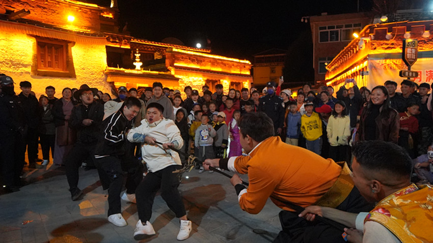 “江流宛轉(zhuǎn)繞芳甸,月照花林皆似霰……”農(nóng)歷八月十五,月色籠罩下的勒通古鎮(zhèn)·千戶藏寨,流淌著中華詩(shī)歌的悠悠古韻。9月29日晚,“我們的節(jié)日·中秋”新時(shí)代文明實(shí)踐系列活動(dòng)之“月滿理塘、愛(ài)我中華”文藝展演,引得群眾和游客爭(zhēng)相拍照。藏戲舞蹈“扎西雪巴”、藏族踢踏舞讓觀眾領(lǐng)略到濃郁的民族風(fēng)情,詩(shī)朗誦伴舞《我愛(ài)你,中國(guó)》引人入勝……一場(chǎng)場(chǎng)精彩演出展現(xiàn)了傳統(tǒng)文化的多重魅力。