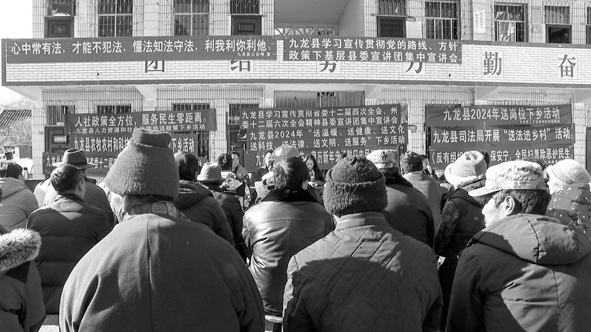 本網(wǎng)訊 1月12日至14日,九龍縣委宣傳部組織縣司法局、縣農(nóng)牧農(nóng)村和科技局、縣衛(wèi)生健康局等部門,聯(lián)合開展了學(xué)習(xí)宣傳貫徹習(xí)近平新時(shí)代中國特色社會(huì)主義思想、省委十二屆四次全會(huì)精神、州委十二屆六次全會(huì)精神宣講暨“七下鄉(xiāng)”暖冬行動(dòng)。