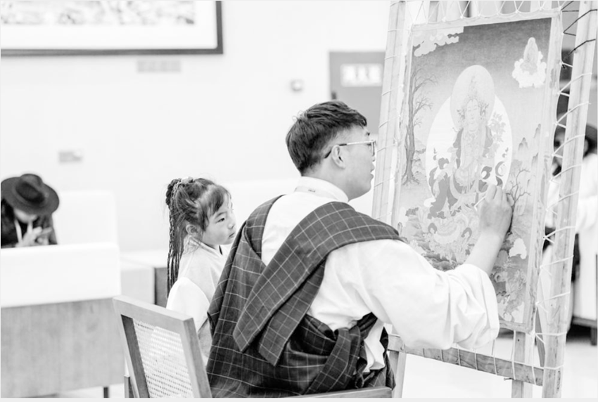 “絲路甘孜·龍燈牧場”景區(qū)里體驗(yàn)畫唐卡。