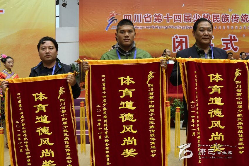 在閉幕式上的頒獎(jiǎng)儀式上,本屆組委會(huì)分別頒發(fā)了本屆民運(yùn)會(huì)各競(jìng)賽項(xiàng)目團(tuán)體一等獎(jiǎng)、開幕式大型文體表演特等獎(jiǎng)、體育道德風(fēng)尚獎(jiǎng)。我州代表團(tuán)獲本屆民運(yùn)會(huì)表演項(xiàng)目一等獎(jiǎng)、體育道德風(fēng)尚獎(jiǎng)。據(jù)悉,獲得體育道德風(fēng)尚獎(jiǎng)的還有宜賓市代表團(tuán)、阿壩藏族羌族自治州代表隊(duì)、涼山彝族自治州代表隊(duì)、成都市代表團(tuán)、攀枝花市代表團(tuán)、瀘州市代表團(tuán)、綿陽(yáng)市代表團(tuán)、樂山市代表團(tuán)、廣安市代表團(tuán)、達(dá)州市代表團(tuán)、雅安市代表團(tuán)、西南民族大學(xué)代表團(tuán)、成都體育學(xué)院代表團(tuán)。