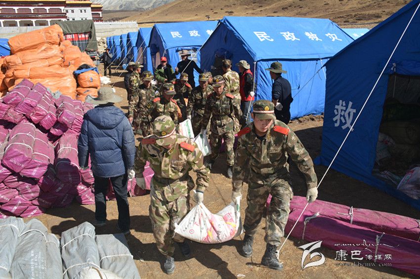 州森警支隊參謀長帶前指和康定中隊60人到達震中塔公鎮(zhèn)奪讓村和木雅祖慶學校。官兵看到校舍慘景和師生驚慌失措表情,忘記了奔波疲勞和自身安危,有序疏散30名師生、搶救學校2臺受損車輛,冒著零下近10度的低溫,連夜為師生搭建帳篷17頂、簡易廁所10個,參戰(zhàn)官兵一夜未睡奮戰(zhàn)至黎明。23日8時10分,參戰(zhàn)的森警官兵又奉命轉(zhuǎn)戰(zhàn)至瓦澤鄉(xiāng)魚子西1、2、3村,為藏牧民轉(zhuǎn)移牦牛等牲畜200余頭,從危房中搬運大米、青稞等糧食11.8噸,沙發(fā)、銅火爐、電視機等1680余件(套)。24日上午官兵又深入到瓦澤鄉(xiāng)麥巴村,為受災群眾拆除危房2間、搬運危房內(nèi)貴重物品10余噸,下午,抗震救災指揮部又緊急調(diào)參戰(zhàn)森警官兵為沙德鄉(xiāng)運送棉帳篷等救災物資,支隊前指帶50人動用6臺車輛機動110公里到達沙德鄉(xiāng)政府,又連夜劃分四個行動小組為沙德鄉(xiāng)7個偏遠村(組)將帳篷運送到位,官兵一夜未睡將10余頂棉帳篷依次搭建到位。25日上午,官兵又接到塔公鎮(zhèn)扎西寺僧尼告急,60名官兵顧不上吃飯,緊急出動運輸15頂棉帳篷,奮戰(zhàn)扎西寺5個安置點,至晚19時才搭建完畢,官兵就座運兵車里打盹休整。26日上午,武警總部工作組看望慰問參戰(zhàn)一線官兵,官兵精神振作,按抗震救災指揮部指示,60名官兵在聯(lián)指物資發(fā)放中心,搬運裝卸棉帳篷、棉大衣、棉被等越冬衣物和礦泉水、大米、面粉、蔬菜等生活物資68噸。目前,60名官兵仍奮戰(zhàn)一線,雅江大隊、道孚大隊部分官兵在各自轄區(qū)展開震后自救互救行動。