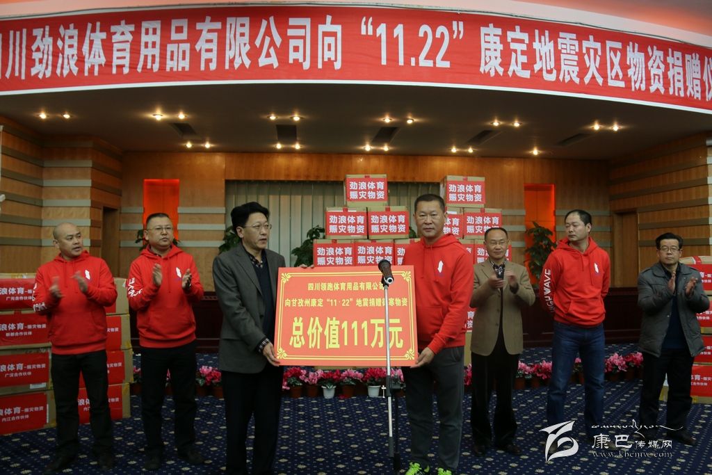 何飚代表州委、州政府向四川勁浪體育用品有限公司及分公司捐贈的愛心物資表示衷心感謝。他說,康定發(fā)生6.3級地震后,牽動著四川勁浪體育用品有限公司和重慶、宜賓分公司以及全體員工,公司積極踴躍承擔社會責任,用最真誠的感情、最誠摯的愛心,譜寫了一曲眾志成城、感人肺腑的大愛樂章。真誠希望愛心企業(yè)繼續(xù)關注災區(qū),為建設美麗生態(tài)和諧幸福新甘孜,為重建美好家園奉獻力量。