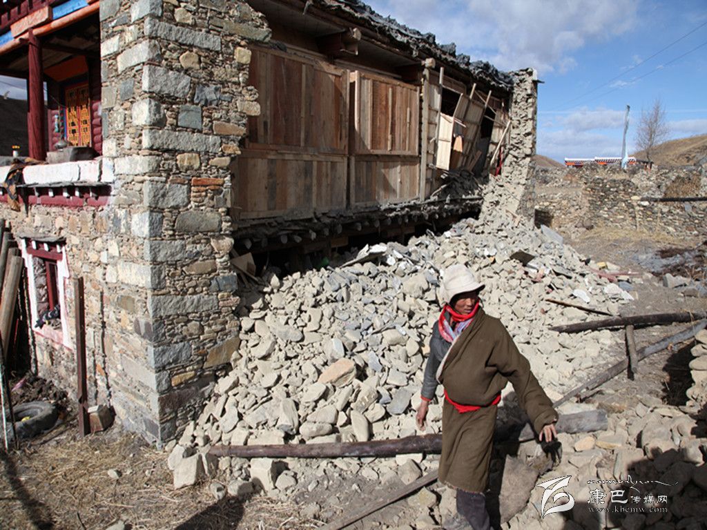 該村不少舊式藏居已經(jīng)徹底倒塌,瓦礫遍地。正在幫助村民搭建帳篷的中古村包村干部劉怡說,全村共189戶村民,125戶有房,受災110棟房,其中五組受災最嚴重,31戶房屋倒塌。這個村當年沒有被納入牧民定居建設。