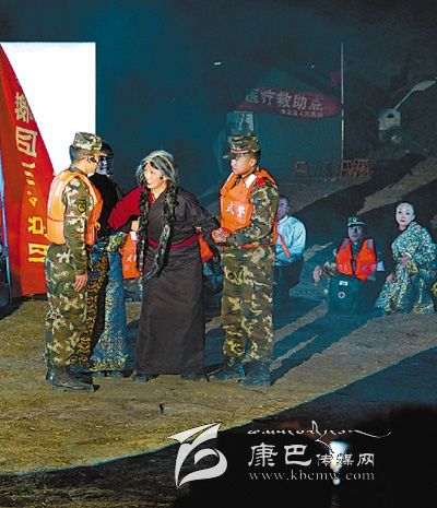12月14日,武警官兵和受災(zāi)群眾一起表演節(jié)目。當日是康定震后22天,四川省甘孜藏族自治州在木雅祖慶學校舉行“再唱山歌給黨聽 感恩奮進”文藝晚會。學校273名學生、州縣演藝人員、武警官兵用深情的歌唱表演、詩歌朗誦、舞蹈表演,表達了他們對各級黨委政府、社會各界在康定“11·22”地震抗震救災(zāi)中給予關(guān)懷和關(guān)愛的感激之情??拐鹁葹?zāi)前線指揮部全體工作人員、州武警支隊、州特警支隊、州武警二支隊官兵和當?shù)厝罕娂s1500余人觀看演出。 人民日報記者 王明峰攝